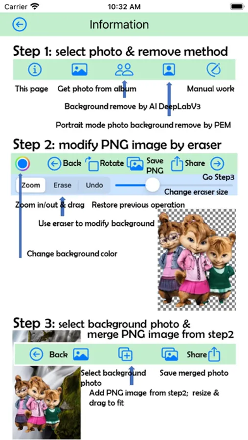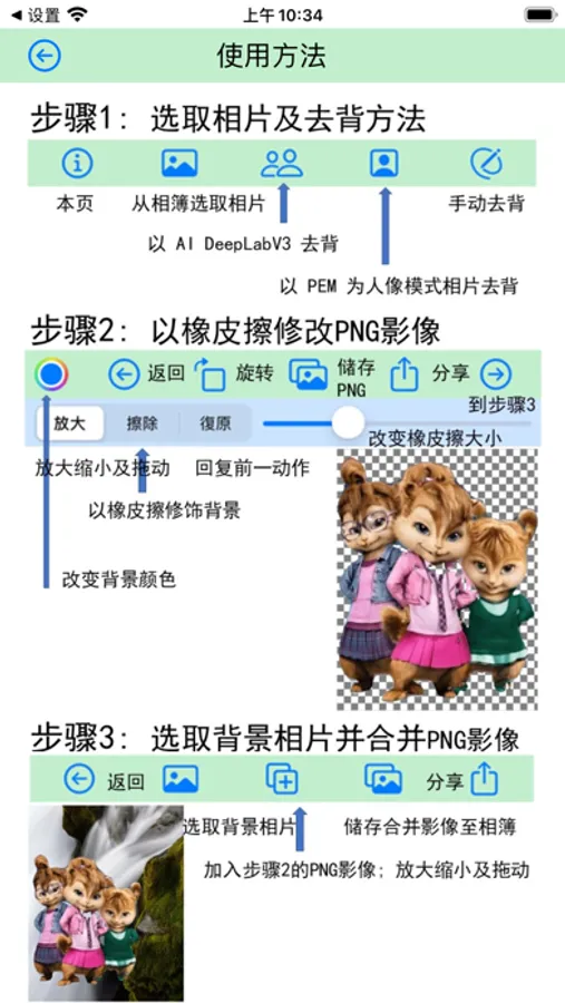 The app let you remove background from one photo then overlap the clipped image on another photo.