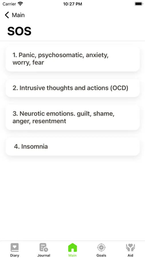If a panic attack, anxiety, worry, obsessions, neurotic emotions, etc. catch you off guard, click on the "SOS" button, select the section you need and follow clearly structured recommendations.