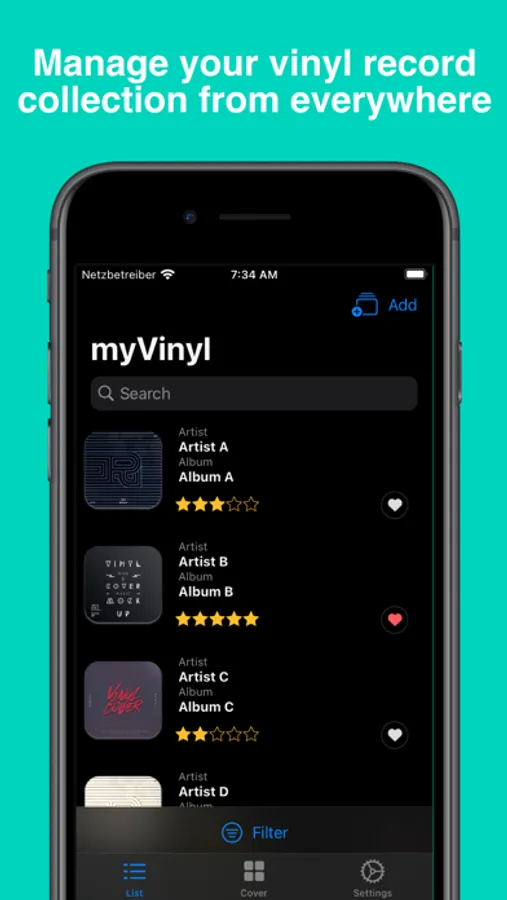 Did you know the feeling? Going over the flea market and looking for used vinyl records. Do I have these already? With myVinyl you always have a nice and comprehensive overview about your vinyl record collection. Features like sorting, filtering, cover views and full text search supports a smooth and easy usage. With iCloud sync all captured data gets synchronized and is available all over your devices.