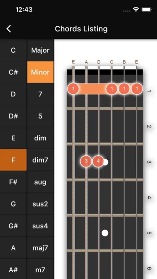Standard chords list C, C#, D, D#, E, F, F#, G, G#, A, A#, B