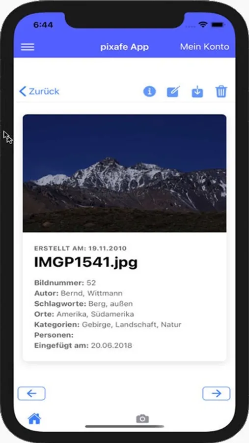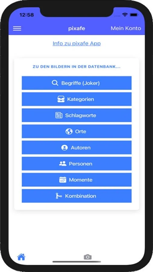 Die pixafe App ist Bestandteil der Komponenten des pixafe Systems. Sie erlaubt es im Unternehmen mittels mobilen Endgeräten auf den im Unternehmen betriebenen pixafe Server zuzugreifen