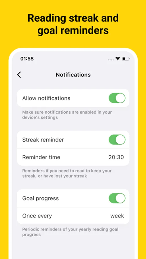 Reminders to make sure you keep your reading streak and complete your yearly goal