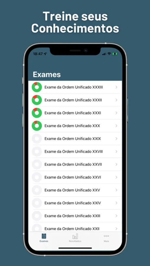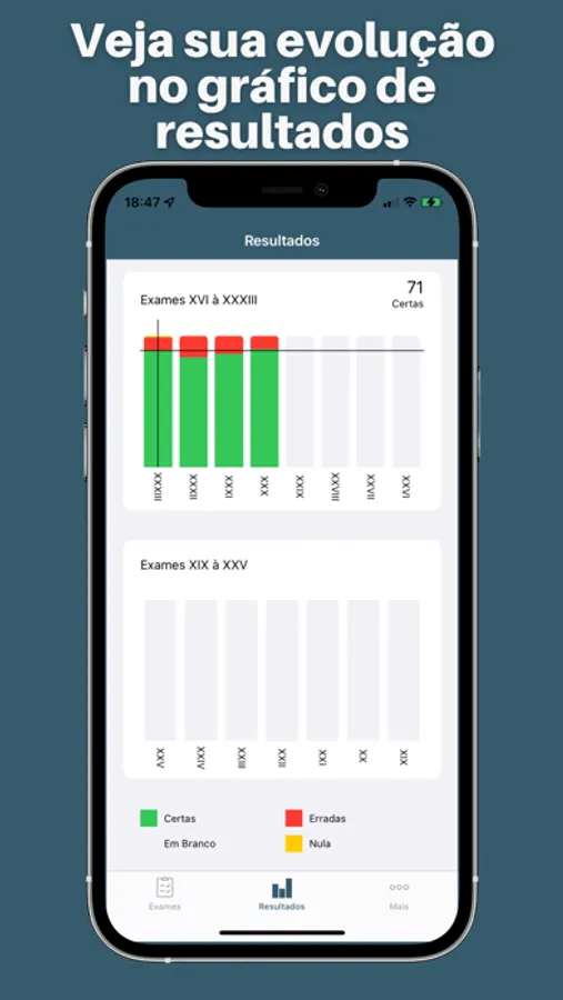 Treine seus conhecimentos resolvendo provas anteriores e veja sua evolução em gráfico .