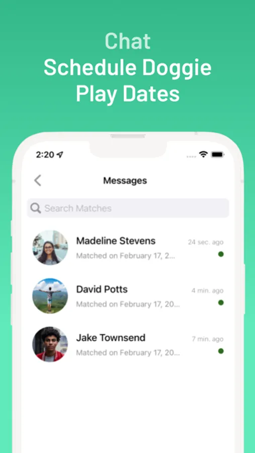 Live chatting with connections to schedule doggie playdates and meet-ups