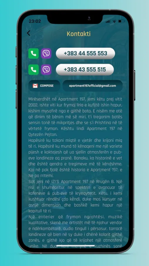 Mirëserdhët në Apartment 197, jemi këtu prej vitit 2002. Ishte viti kur frymoj liria e kufijtë ishin hapur, kishim mysafirë nga e gjithë bota. E nisëm me atë që dinim të bënim më së miri, t'i tregonim botës sensin tonë të mikpritjes dhe se s'i Prishtina në të vërtetë frymon. Kështu lindi Apartment 197 në Qytezën Pejton.