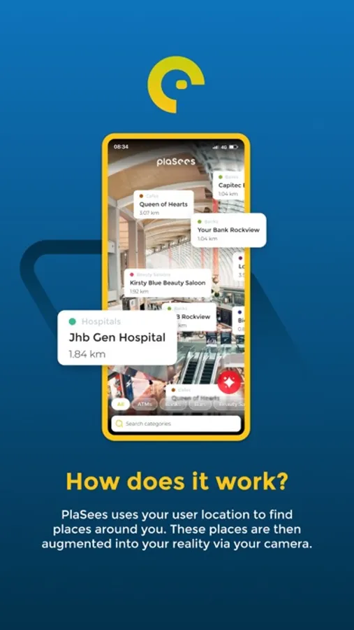 PlaSees uses your user location to find places around you. These places are then augmented into your reality via your camera.