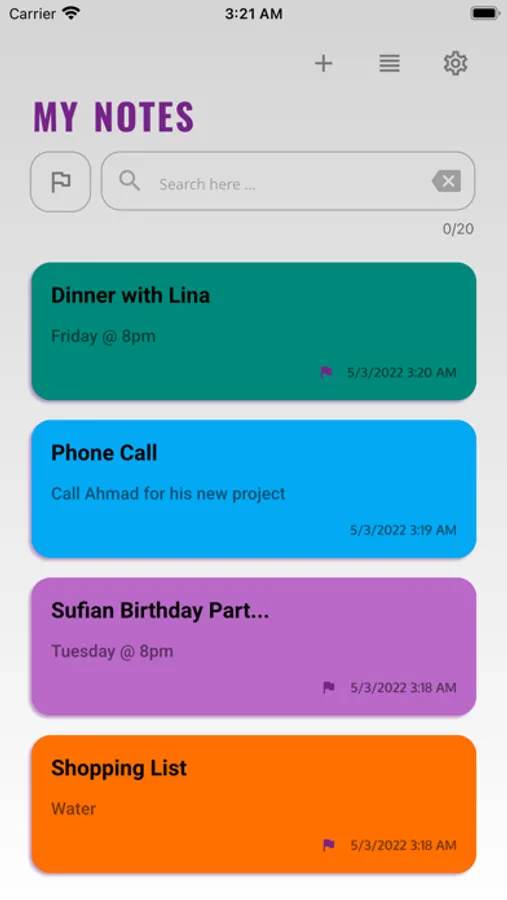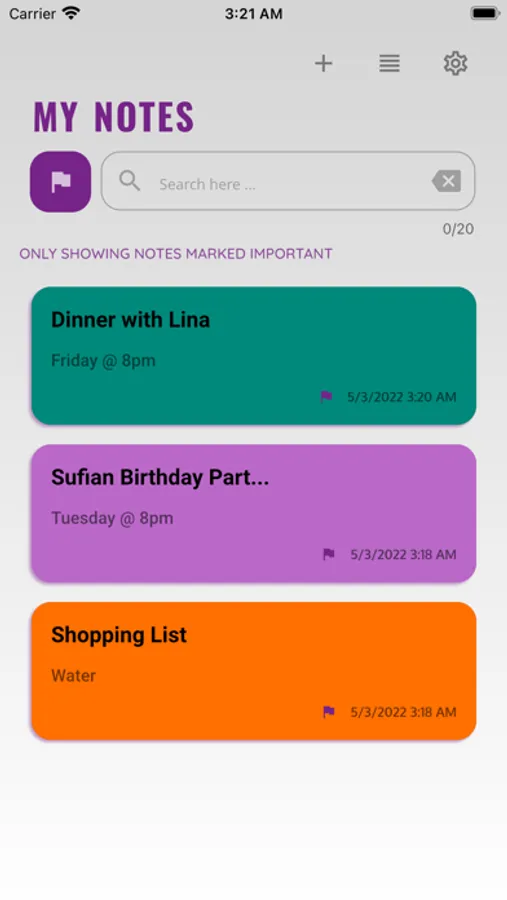 - Click on the (+) icon to add a new note, choose a color and fill in the title and description of the note, you can also mark the note as important if you want.