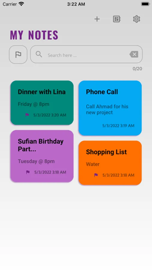 - Click on the Display icon to display the notes as Grid list or normal list.