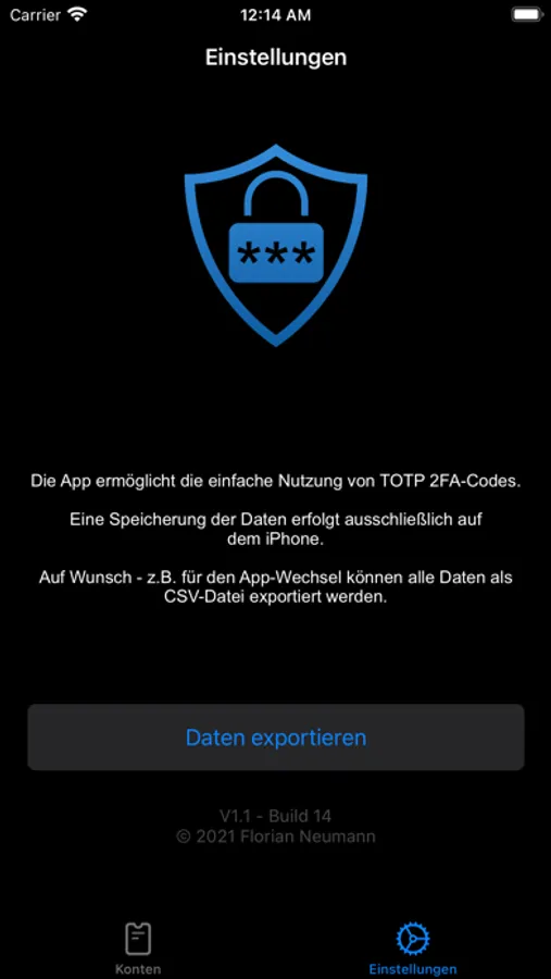 Ein Export der gespeicherten Codes z.B. bei Wechsel des Smartphones oder der App ist jederzeit im CSV-Format möglich.