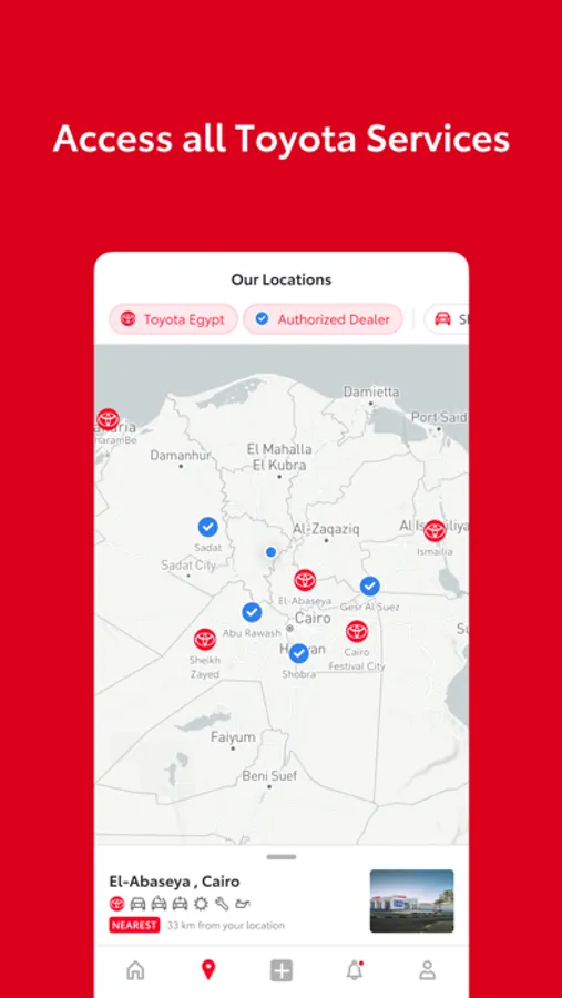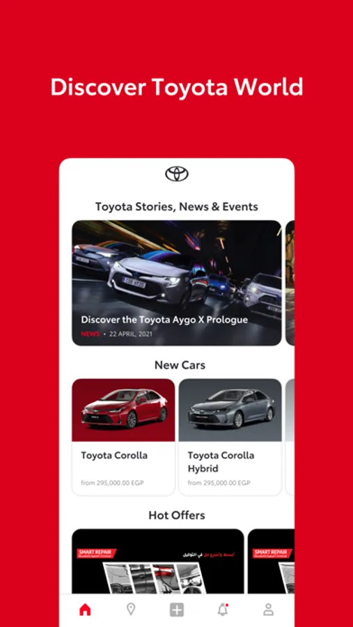 Created to provide a more convenient way to manage your vehicle, My Toyota app gives you even more ways to take care of your vehicle. In addition, non-Toyota owners can browse the newest Toyota models in Egypt, check latest Toyota news and many exciting services that awaits them after their Toyota ownership.
