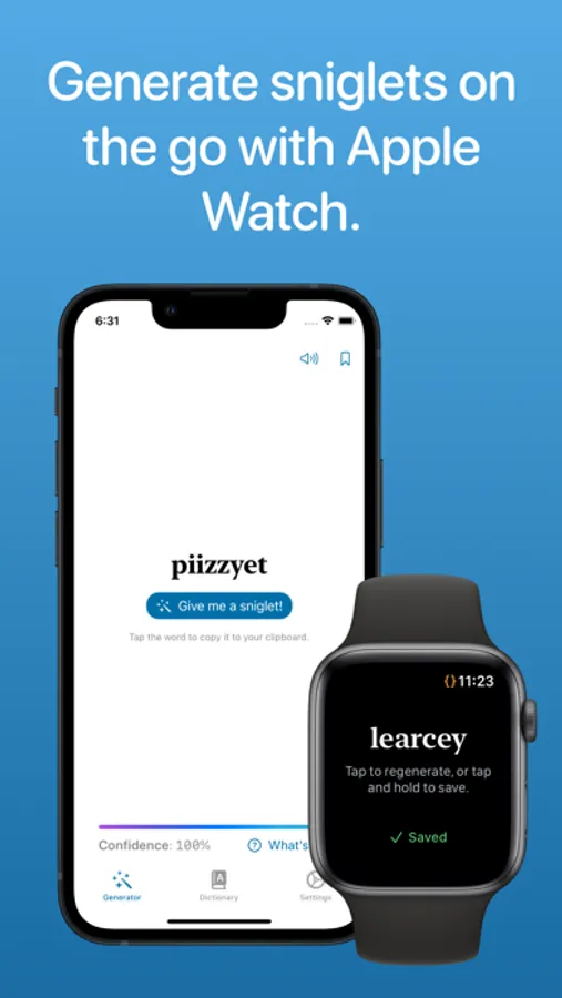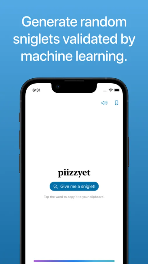 Give Me a Sniglet is a random word-like generator with an on-device machine learning model that validates whether the word is likely to be valid. Generate a set of words and view various confidence score, and copy them to your clipboard with a single tap. Customize the algorithm by changing the size of the words and syllable shapes.
