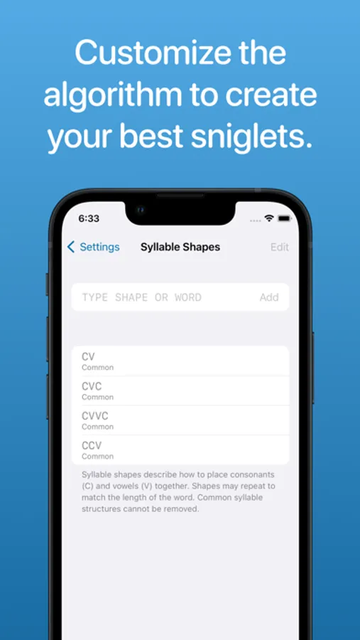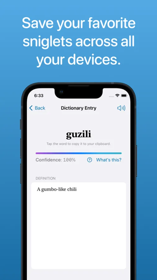 - Save your favorite sniglets into a personal dictionary synced with iCloud