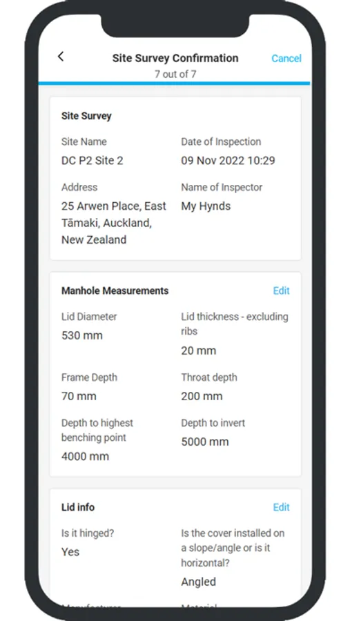 Hynds Aquanect App is a service tool for site survey and onboarding of the Hynds Smarterwater® Manhole Sensors. This tool provides clients with a simple step by step set of instructions for the dimensional data which is used to configure each location. This includes depth to bench, depth to invert, throat length, opening size, cover type and signal strength when used in conjunction with the signal strength test device.