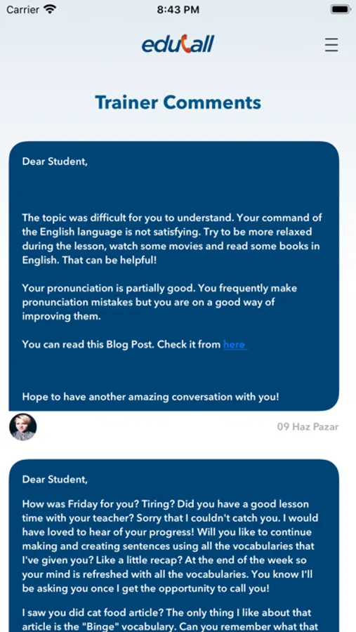 + Eğitmenlerle yaptığınız görüşmelerin ses kayıtlarını dinleyin.
