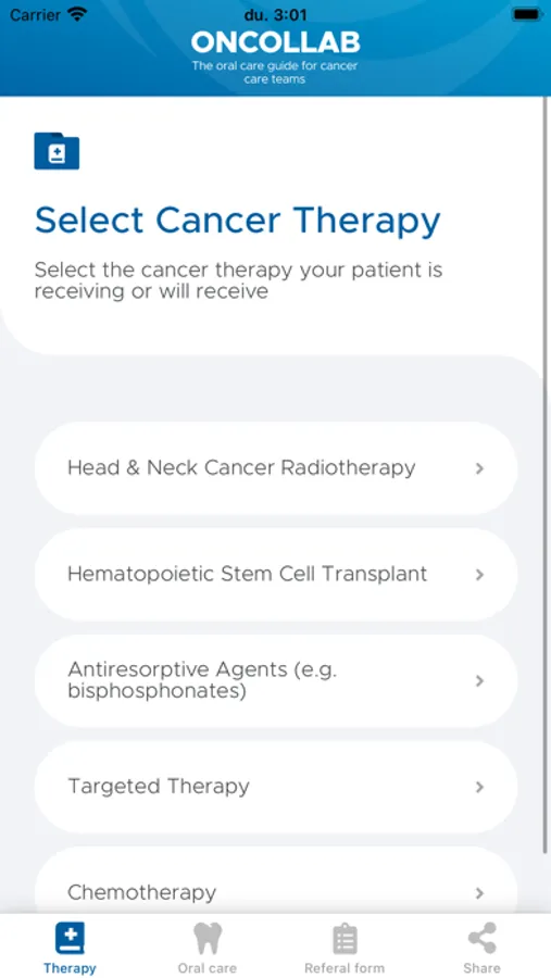 ONCOllab is a learning and practice-support tool seeking toIt also helps to improve the integration of oral healthcare and cancer care and collaboration between the different members of the care team by providing referral and communication tools. ONCOllab looks to create a common language among healthcare professionals to recognize and manage oral complications that may arise during cancer therapy.