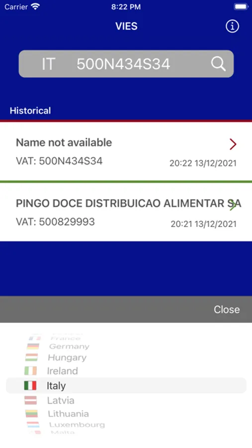 VIESApp directly queries the information on the europa.eu platform. Remember that the information may change and is only valid on the current day.