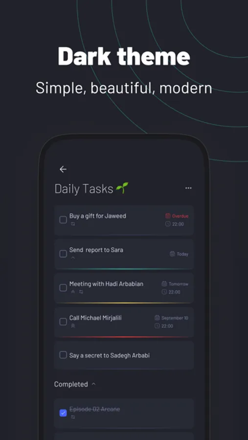 One of the most important features for a task manager app is the ability to access to tasks from different devices. So Dandelion To Do has came to answers to all users requirements and it support backups with iCloud accounts then you can access to your tasks from different apple devices.