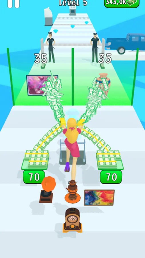 Run and escape the guards with the money!