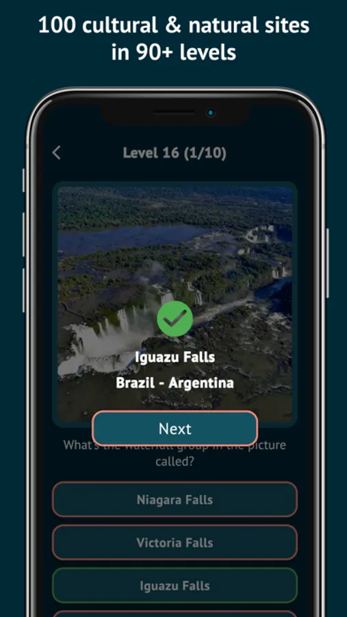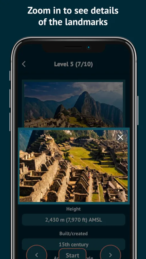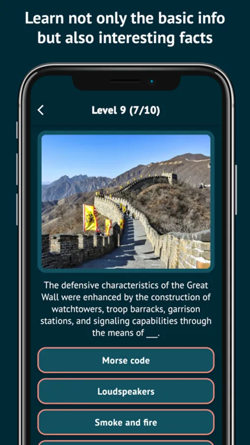 - 900+ questions in 90+ levels help you learn not only the basics (names and locations) but also the landmarks’ details and interesting facts.