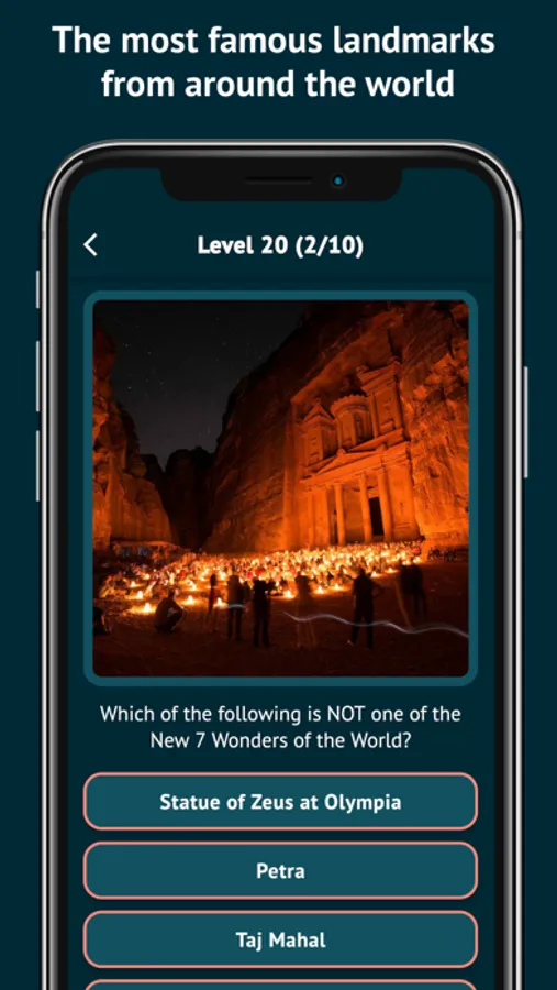 Landmark Quiz helps you learn about landmarks in a unique way, combining learning and playing. It introduces the most famous 100 cultural and natural sites in the world with 900+ questions in 90+ levels, including Statue of Liberty, Eiffel Tower, Colosseum, Great Wall of China, Sagrada Família, Sydney Opera House, Giza Pyramid Complex, Stonehenge, Taj Mahal, Christ the Redeemer, Burj Khalifa, Mount Everest, Machu Picchu, Mount Fuji, Neuschwanstein Castle, The Shard, Petra and many more.