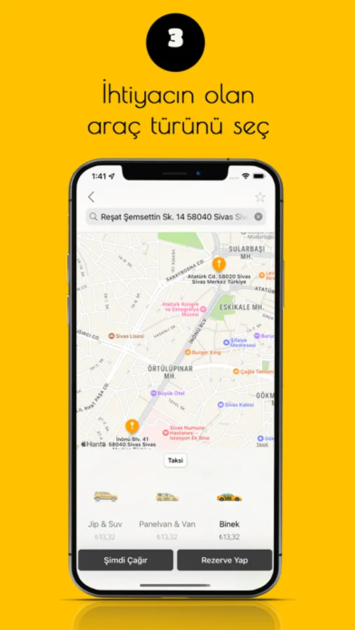 Sivas Taksi uygulaması ile konumunuza en yakın taksiye hemen ulaşırsınız.