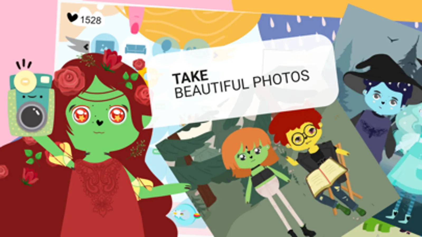 Pose the dolls as you like and add cool background, accessories, stickers, and emoticons. You're ready to take a picture!