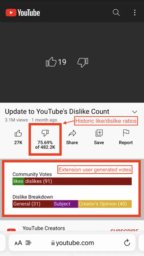 A Safari App Extension that allows you view community generated dislikes on YouTube videos.