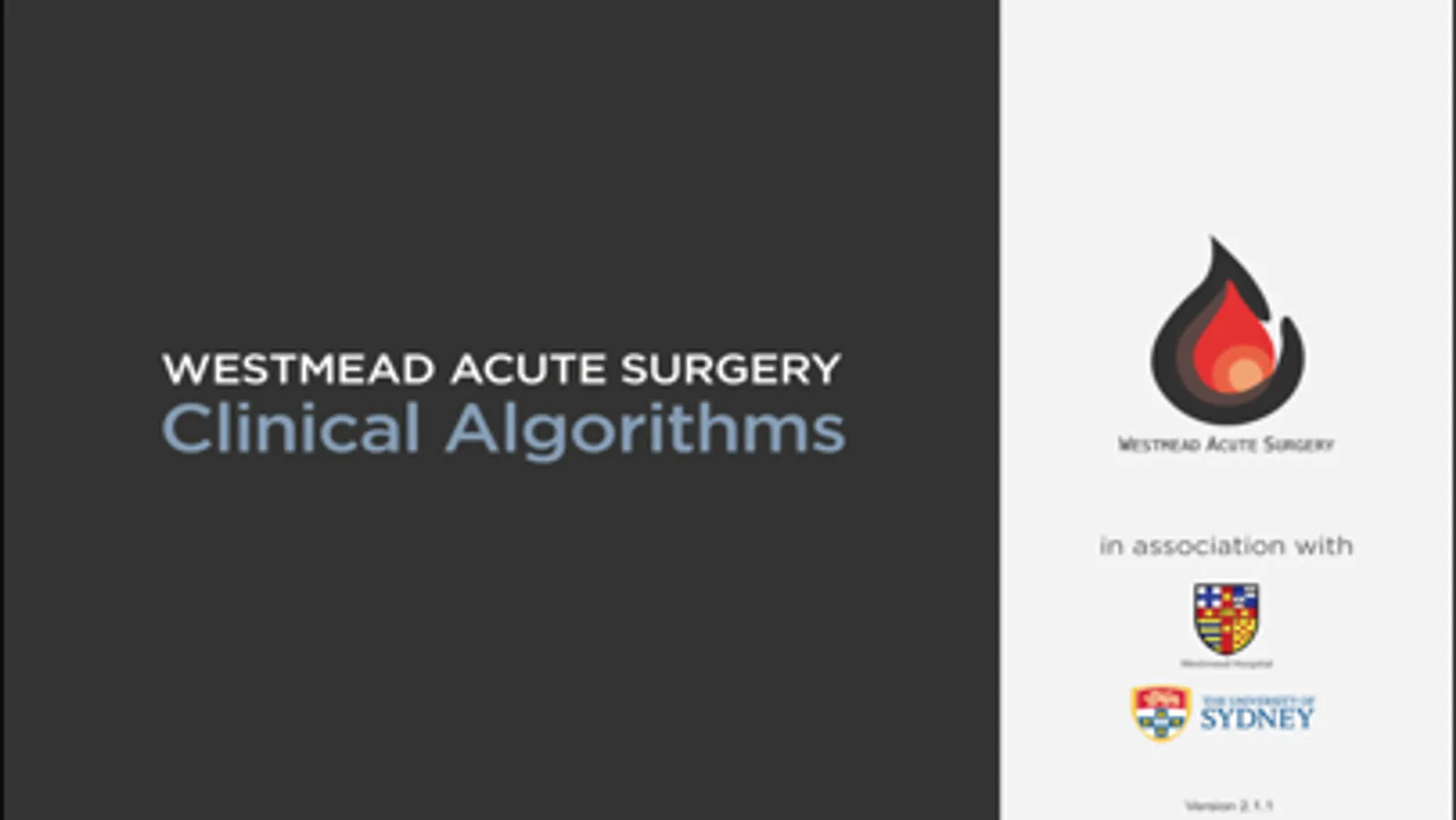 The Westmead Acute Surgery Clinical Algorithms, Calculators and Reference Tables have been developed, utilising evidence-based information, to enhance patient and clinical decision-making, improve efficiency in delivery of safe, standardised health care.