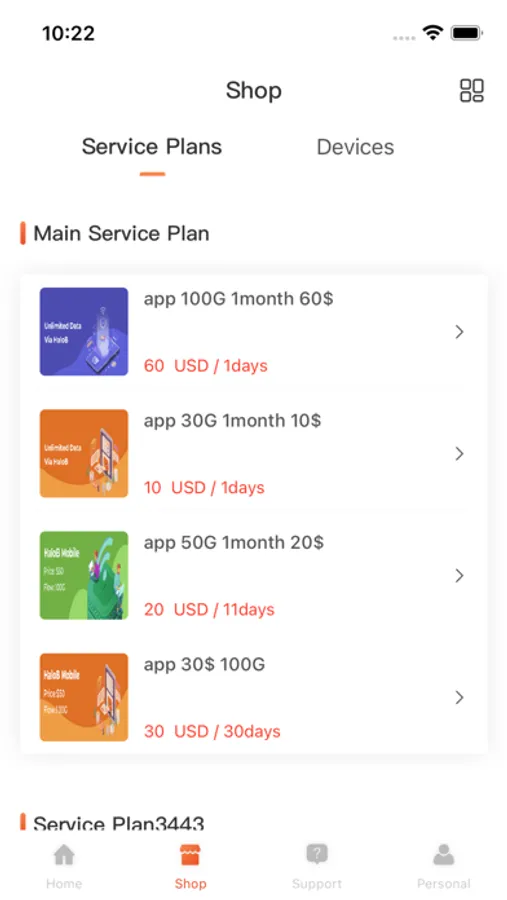 - Shop App sell different kinds of services plan, you can buy data packages in the app to meet your online needs.