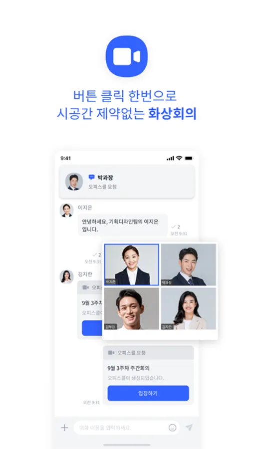 언제 어디서나 가능한 화상회의 기능으로 여러 사람들과 자유롭게 회의하세요.