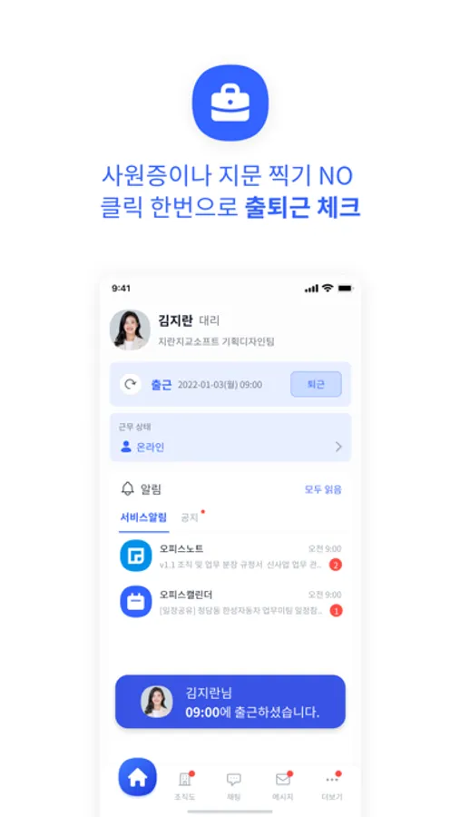 즉각적인 소통은 채팅, 보고나 공지사항은 메시지. 업무 상황에 맞게 2가지 스타일로 소통할 수 있어요.