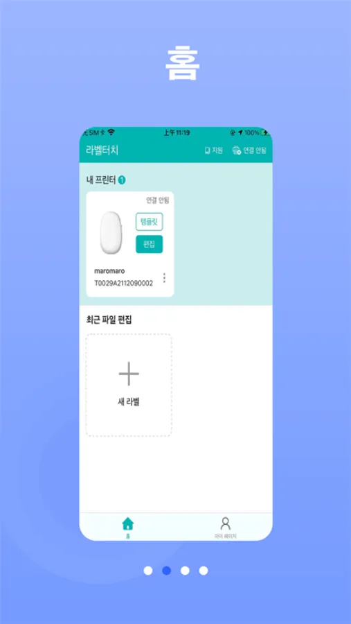 라벨터치 APP은 Bluetooth를 통해 스마트폰/태블릿과 같은 모바일 장치에