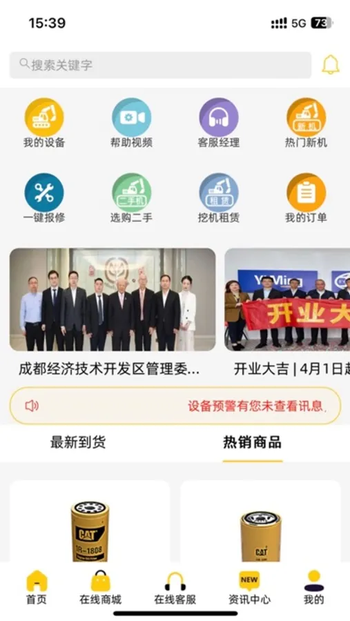 用户可以通过该软件管理自己的设备,如查看定位、查看运行报告、故障分析、查看相关帮助视频。使用过程中可联系线上客服或一对一的客户经理在线答疑。机主也可以添加合作伙伴、操作手为关联用户,共享设备管理权限,提出服务需求。同时用户还可以通过APP获取最新的促销优惠和行业资讯。