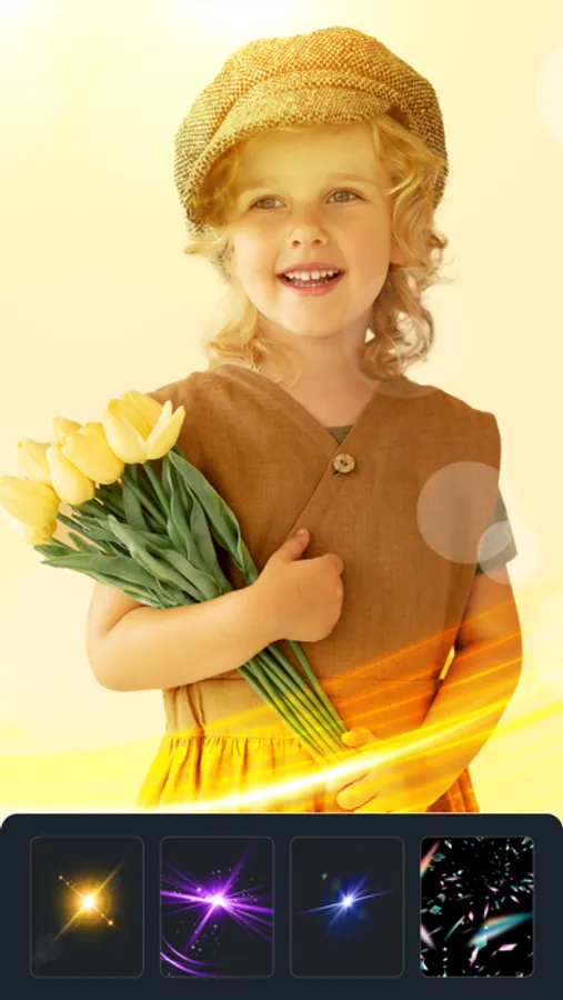 + Effect: Apply trendy Neon, Glitch, Drip, Light FX, Overlay photo Effects.