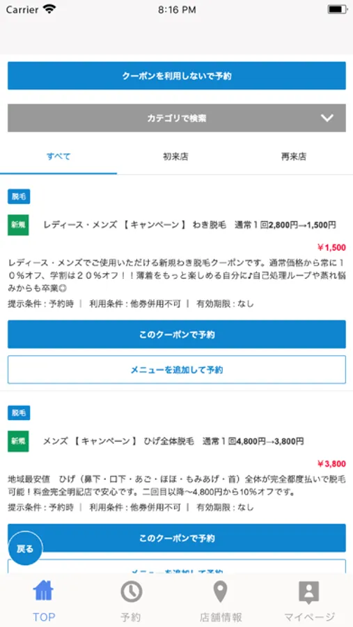 お得なクーポンが配信されます。ネット予約時にクーポン利用での予約も可能なので来店時もスムーズに施術頂けます。
