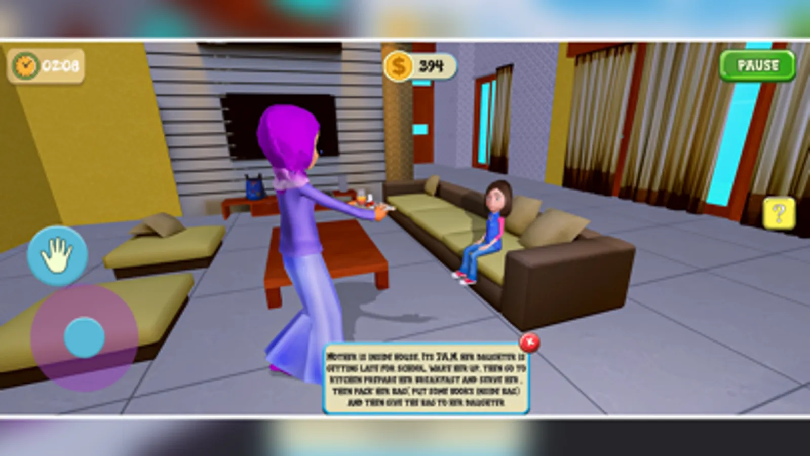 There is a newborn baby in your life. Make sure to take care of him. Like a regular mom, wake your daughter up and make breakfast for her. Give bag pack to her so she can reach school on time. Also, prove your pro-driving skills in the game as well. Feed your family with good handmade food. Go to the supermarket to grab essentials for making food. Your kids need your time, play with your kids in the park. Being an intelligent mom, help your kids with their studies. The newborn baby needs your attention, take care of him. Your baby is sick, rush to the hospital. Your daughter wants to go to her friend’s house, and drop her off safely. Your baby is crying get a toy for the baby and calm the baby.