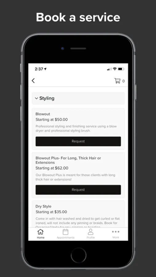 • Book salon services, including hair extensions, holistic hair color, blowouts, and special event styling with your favorite service provider