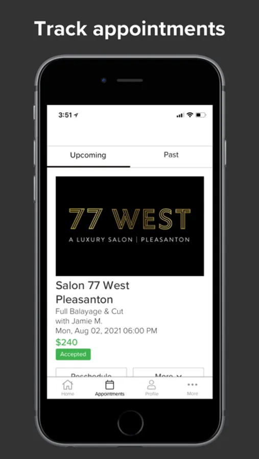 With the 77 West mobile app, booking salon services in the Danville and Pleasanton, CA areas is easier than ever!