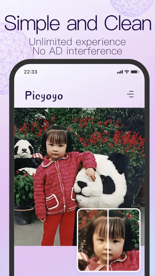 Picyoyo is a minimal and easy-to use App for old photo or blur photo to restore quality and color.Using self-developed AI algorithms, it can repair photo details in a few hundred milliseconds at the fastest, enhancing resolution and color details for a variety of restoration scenarios. The photos can be restored on your phone without uploading to the cloud, which results in a less processing time and by the same time, protects the privacy of the user's photos.