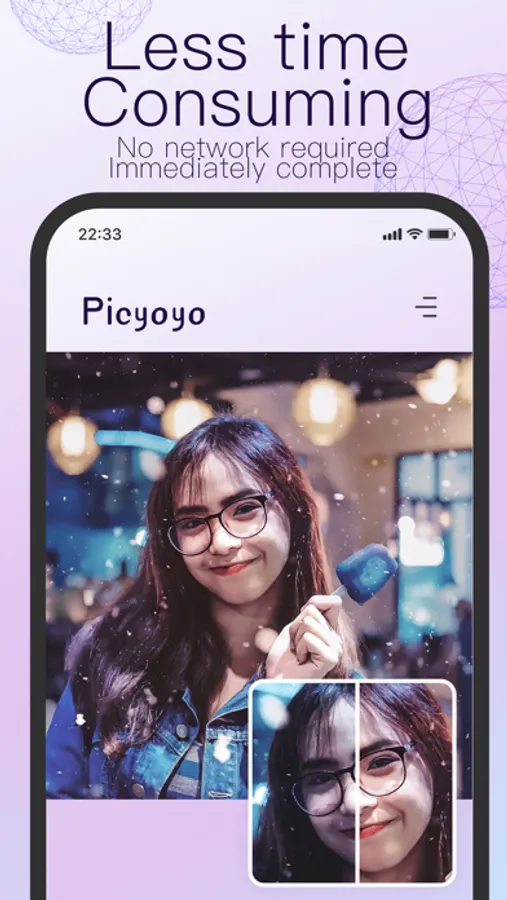 Remember the time you shot something memorizable in dim light, but the photo quality looked poor because of too much noise in it? Or looked foggy because of insufficient light intake? With Picyoyo, you can reduce noise and haze with one tap and get a clean, clear picture.