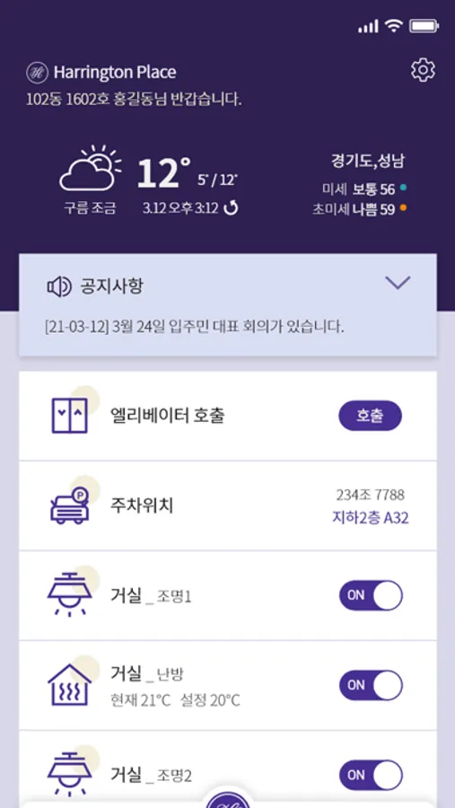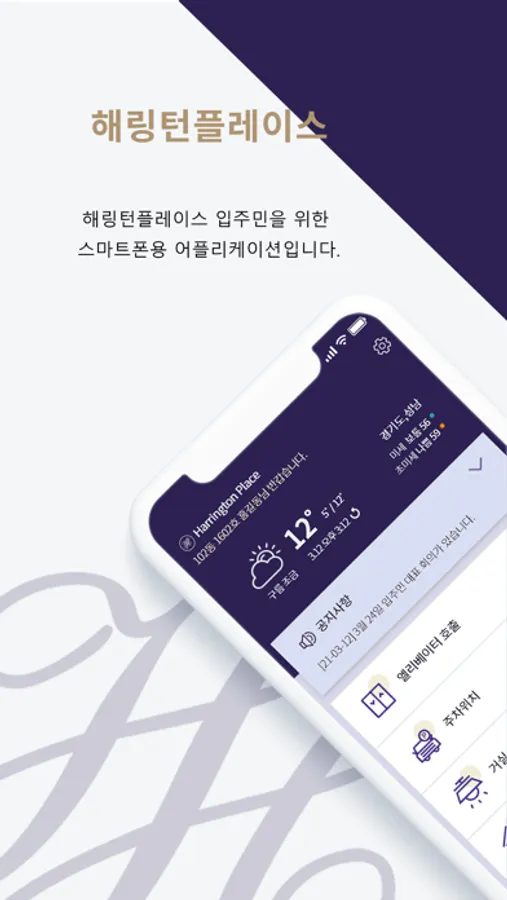 - 해링턴 플레이스의 스마트홈 기기를 모바일 앱으로 조회 및 제어할 수 있도록 합니다.