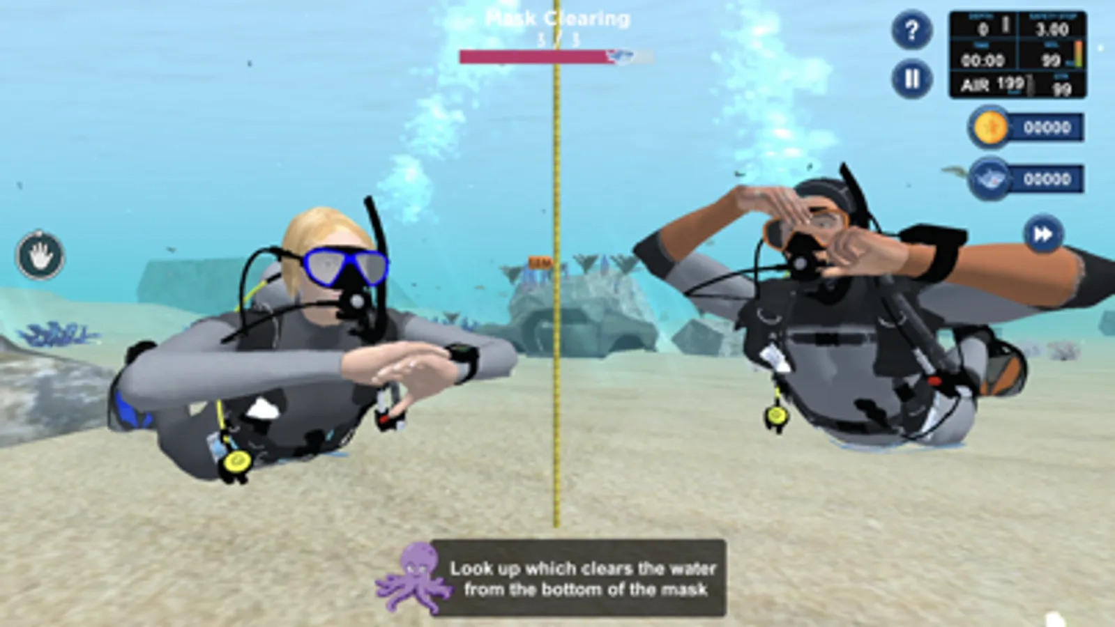 You can now practice real world diving skills just like you would in a scuba diving certification course. Things like putting the equipment together, clearing your mask, or even learning cool hand signals so you can “talk” to your buddy underwater.