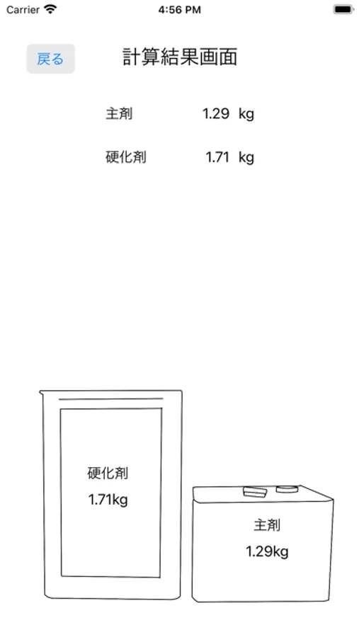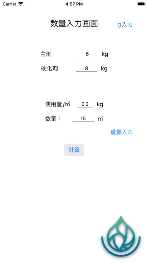 2液性の材料を定量作成する際に各材料の分量を計算するAPP。