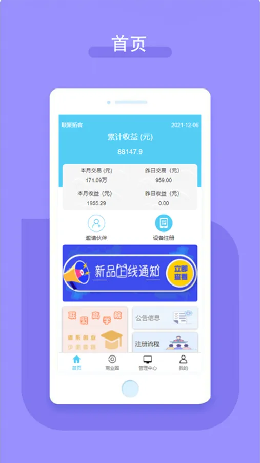 [设备注册]提供便捷的商户绑定设备,商户信息。