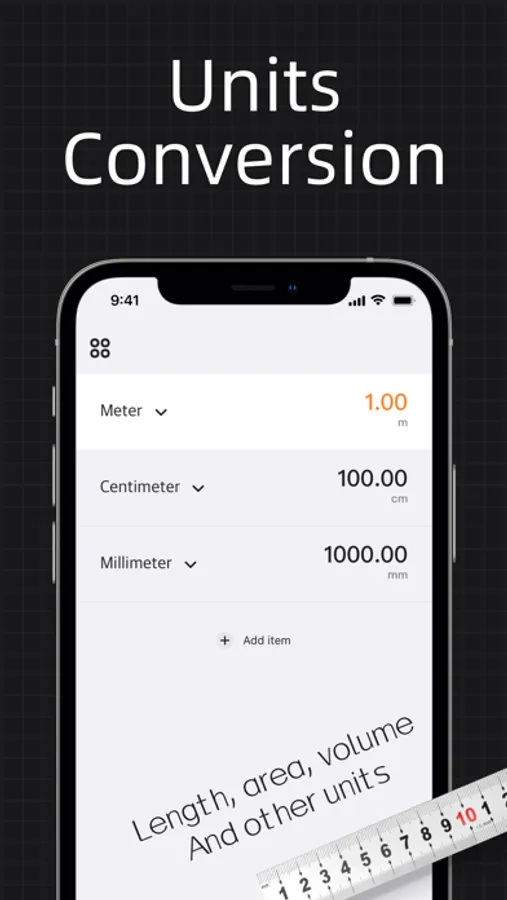 It currently includes three unit conversions: length, area and volume.