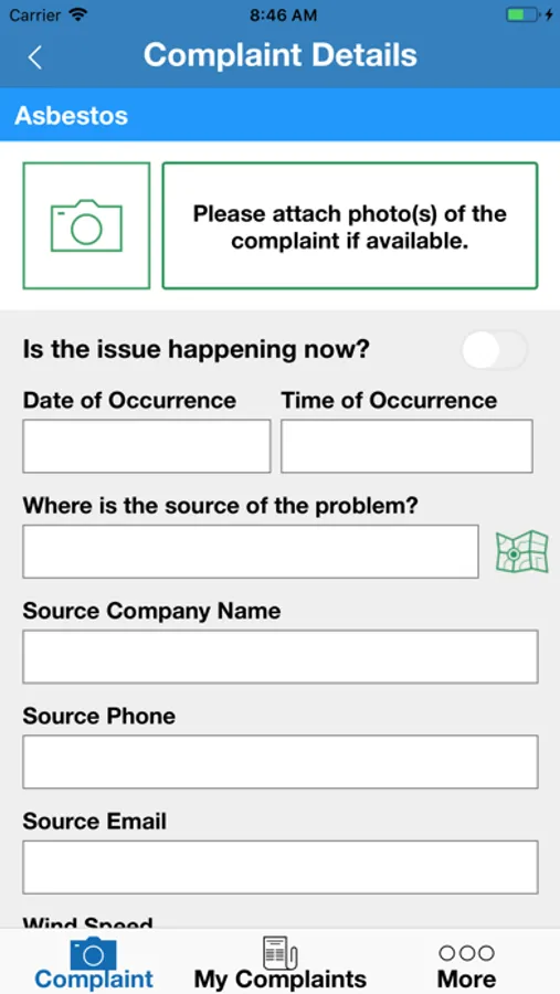 Mobile Application for reporting of air quality concerns such as odor, smoke, dust, asbestos, within San Diego County.