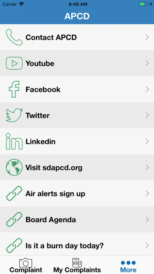This application allows you to report air quality concerns such as odors, dust, asbestos, smoke, and others directly to the San Diego County Air Pollution Control District. The District’s Complaints Program investigates each concern submitted to verify compliance with air quality regulations within the District’s jurisdiction within 48 hours or less.