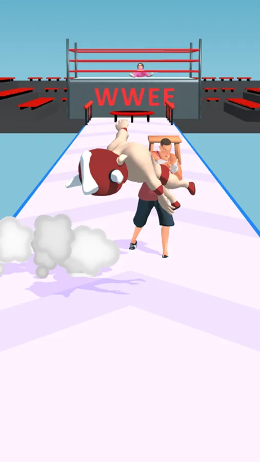 Dodge your rivals and smack down. Be aware of obstacles or you cannot reach to th ring!