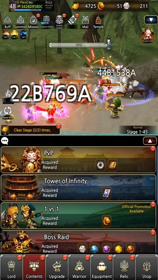Exciting PVP/PVE Contents: Warrior’s Code/Tower of Infinity/1 vs 1/Clan Battle/Boss Raid