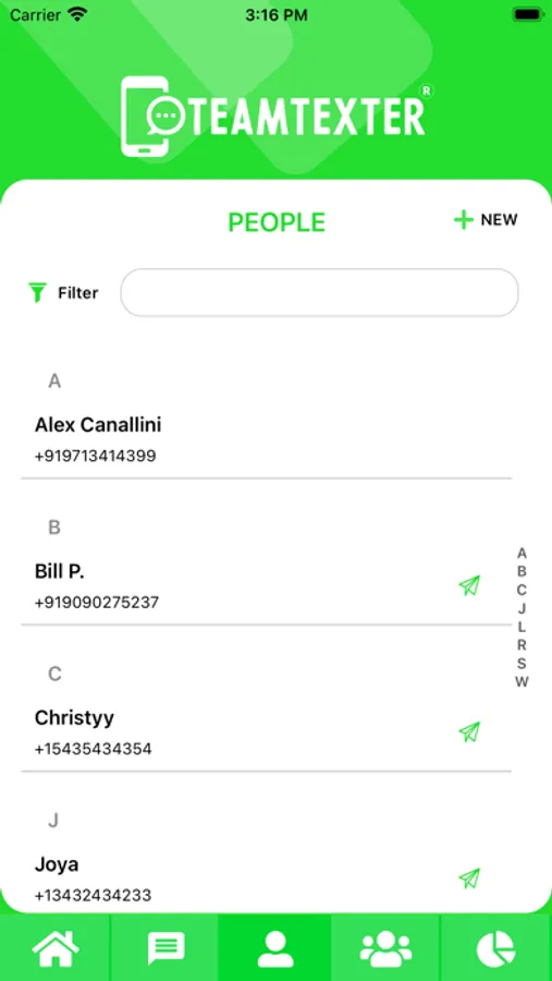 Text message employees, candidates and other people easily through TeamTexter on your mobile without having to give out your own phone number.